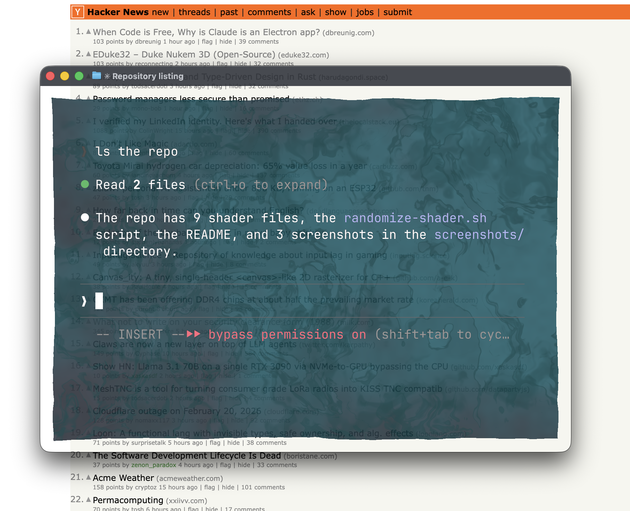 So I liked the functionality, but then I found all the fun, not-so-functional things you can do with it. Ghostty has a custom-shader feature that lets you write GLSL fragment shaders that render behind your terminal content.